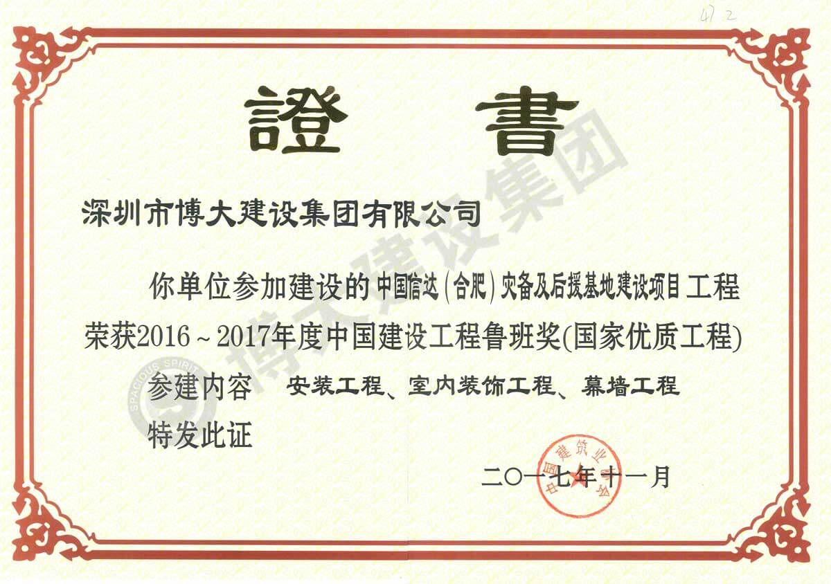 魯班獎(中國信達合肥災備及后援基地建設項目)