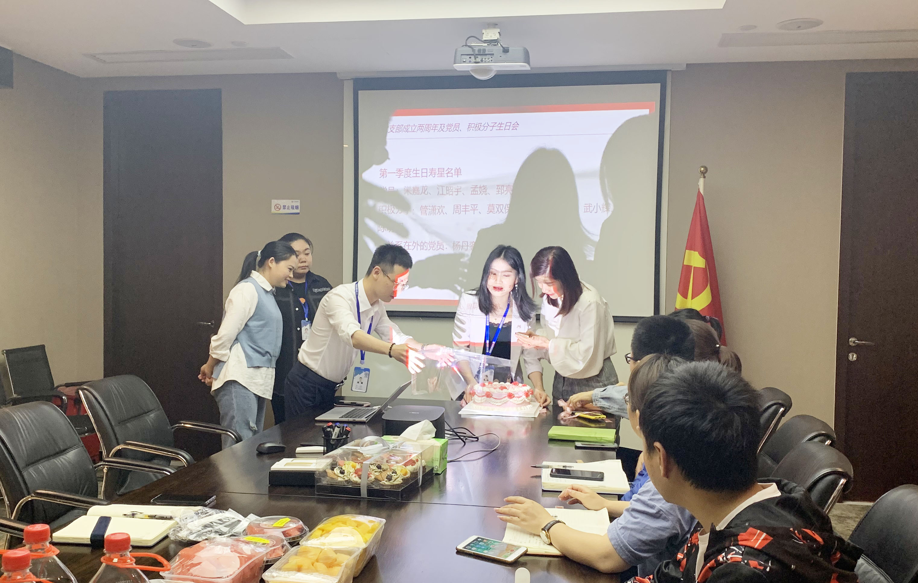 “黨支部就是我們組織生活的家,在這里讓我有了歸屬感,能參加上級(jí)黨委、公司黨支部組織的各類(lèi)學(xué)習(xí)活動(dòng),認(rèn)識(shí)了更多的黨員同志,我覺(jué)得很幸福!”活動(dòng)的最后,黨支部準(zhǔn)備了豐富的下午茶和蛋糕,熱烈慶祝支部成立兩周年,同時(shí)也為第一季度的黨員、積極分子慶生。